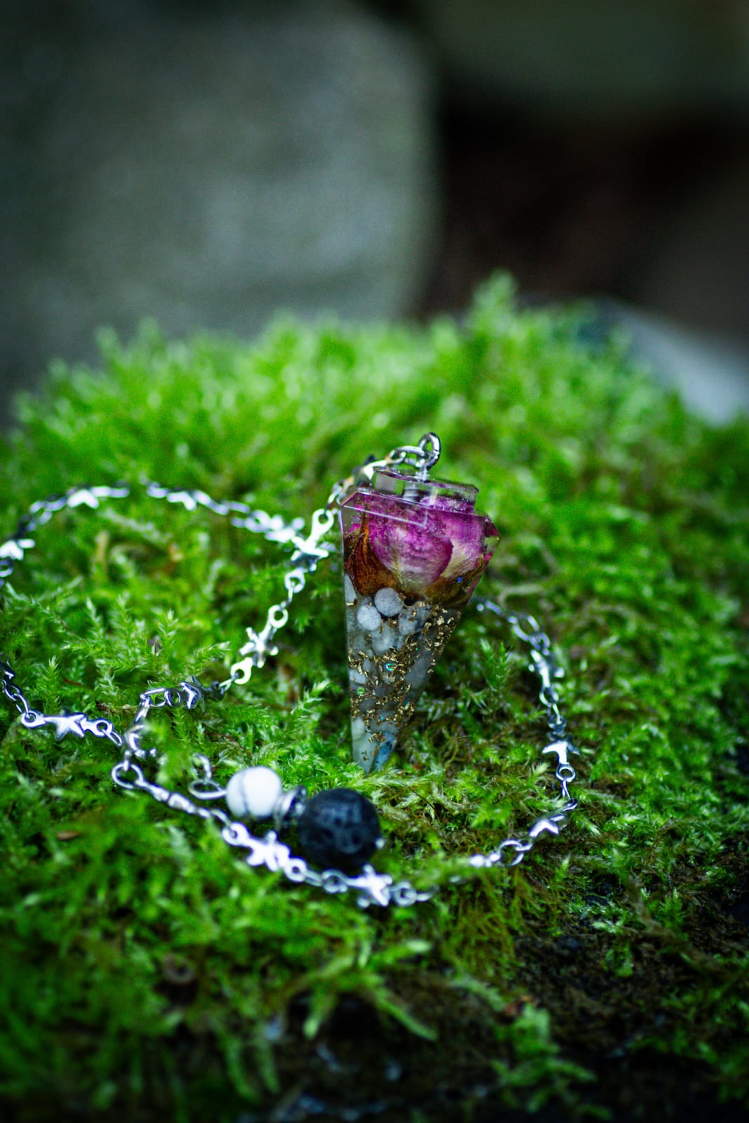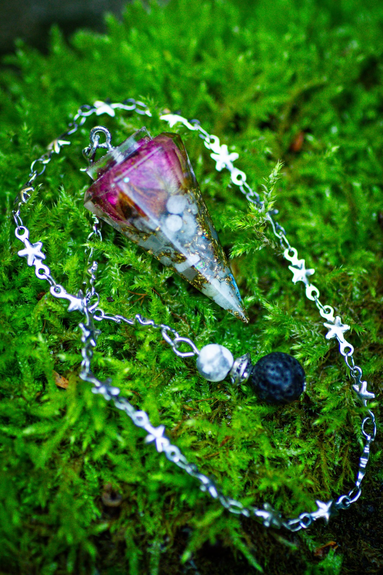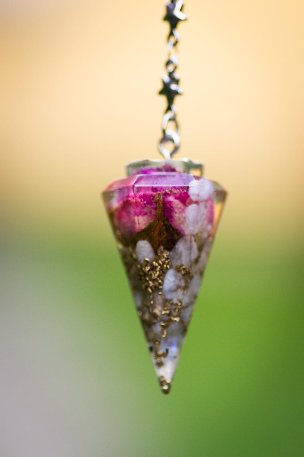 Kyvadlo je na ozdobném řetízku z chirurgické oceli.