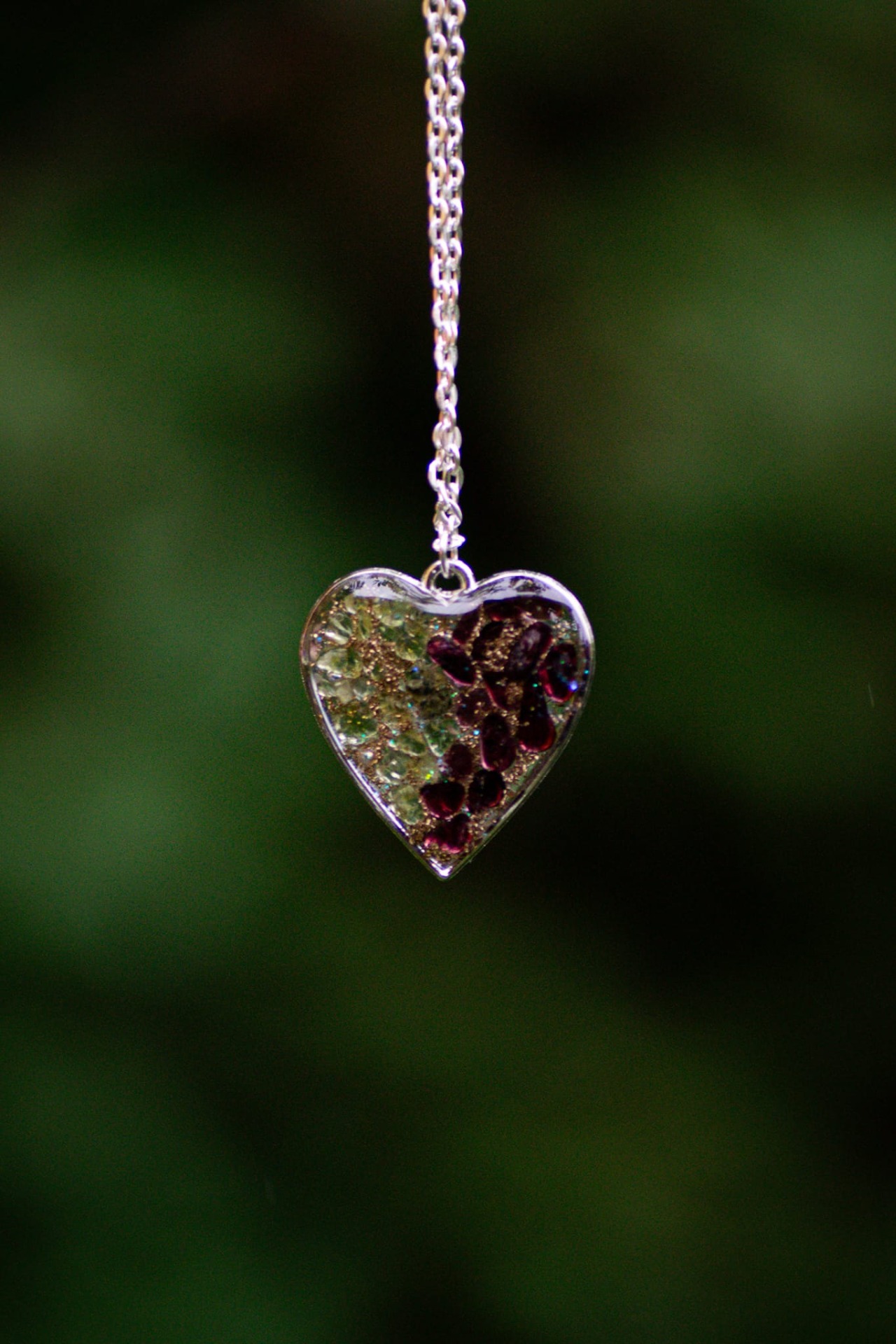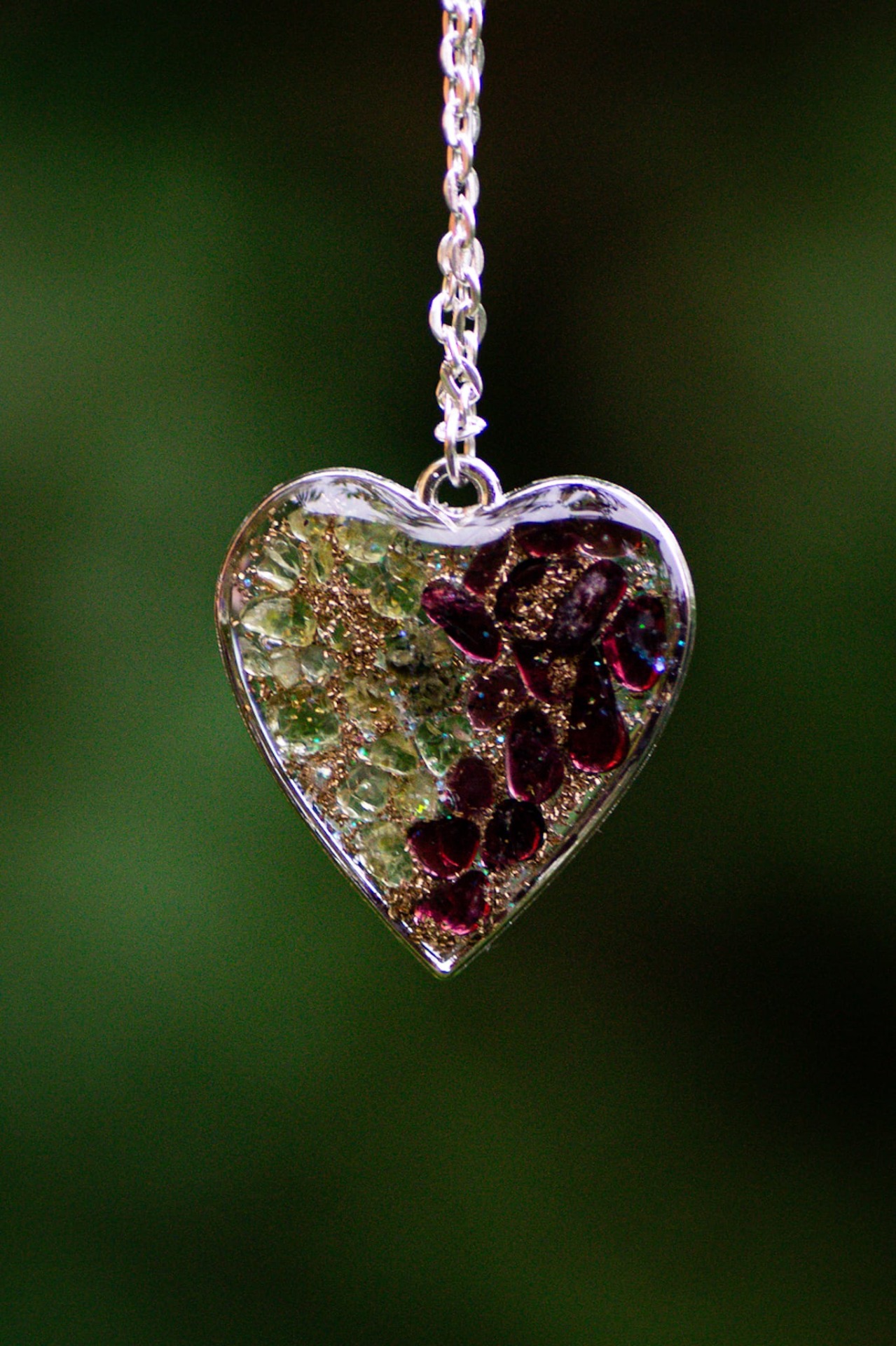 Orgonitový náhrdelník ve tvaru srdce, který je navržen se záměrem očištění a posílení srdeční čakry. Tento orgonit je harmonizační nástroj, který pomáhá vyzařovat lásku, soucit a vnitřní klid