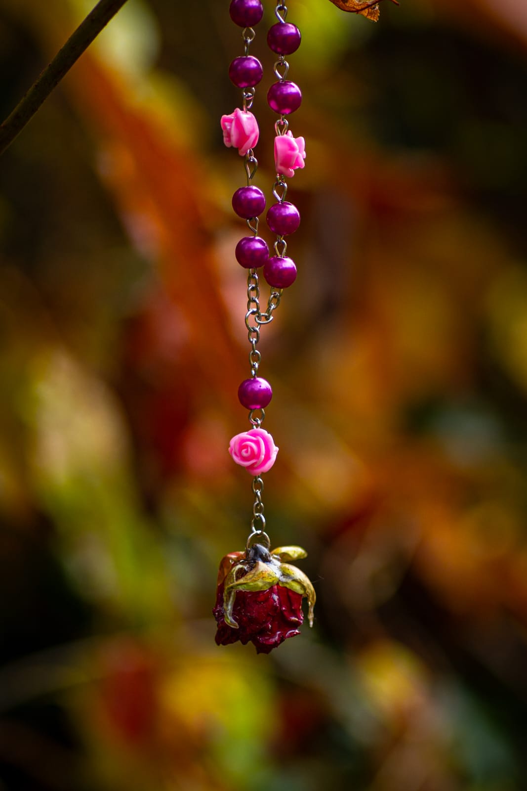OCHRANNÝ AMULET v podobě růžence, který byl stvořen pro péči o váš prostor. V jeho středu září pravá růže, symbol nejvyšší lásky a čistoty, kteá je zalitá do pryskyřice. Toto pečetění trvale aktivuje její magické účinky a zajišťuje nepřerušovanou ochranu.