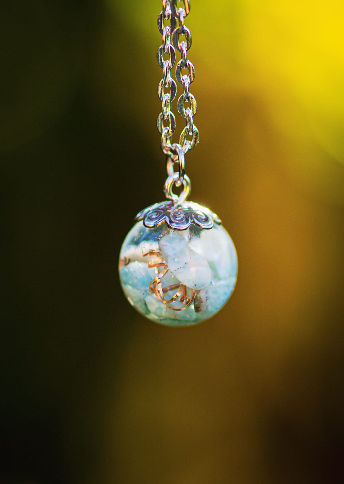 Přívěsek má průměr cca 1,4 cm, nerez řetízek 45 cm.